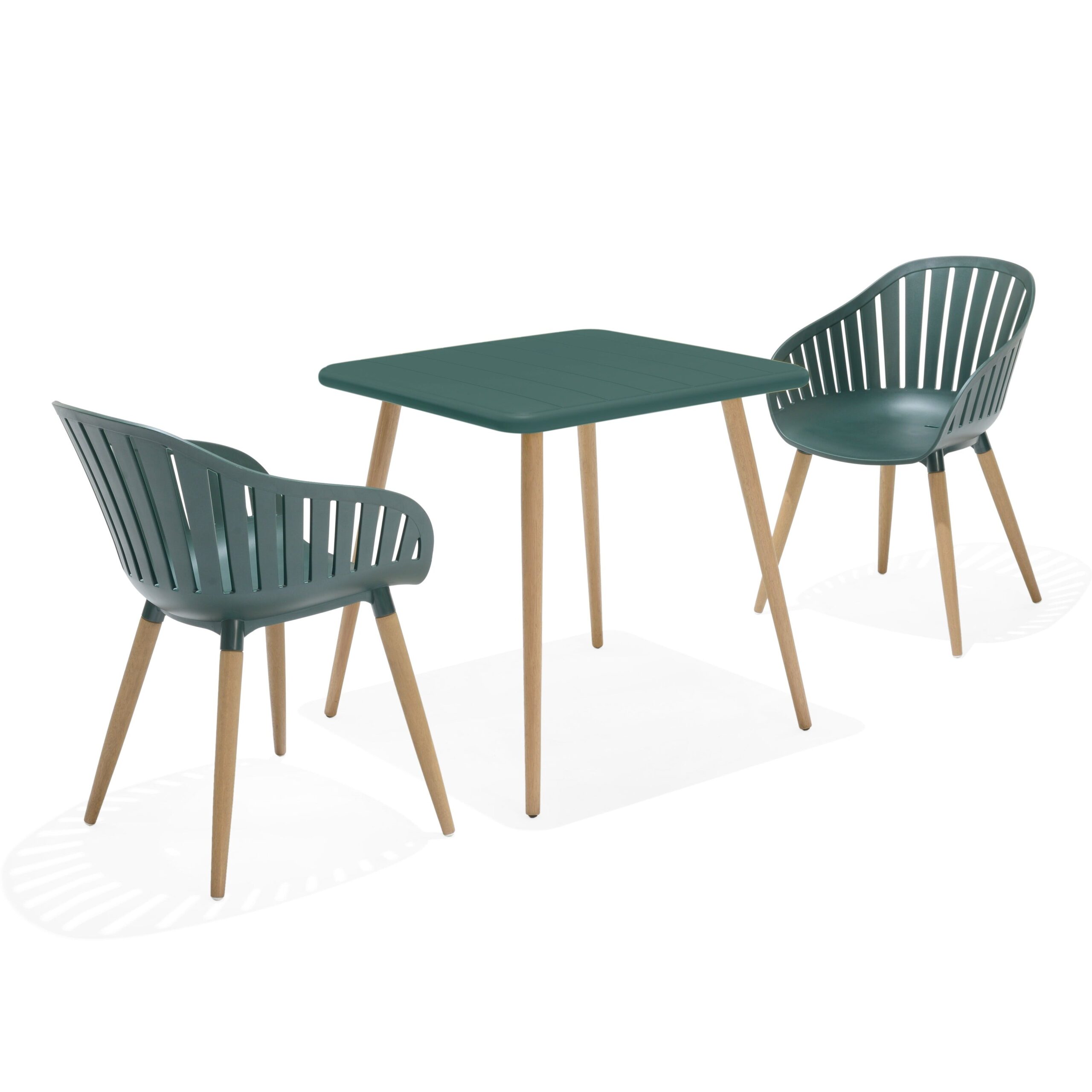 The stylish and practical Bistro set comprised of two comfortable bucket chairs and a matching square table made from DuraOcean or Social Plastic and FSC certified Eucalyptus. Enjoy dining al fresco with this stylish set.